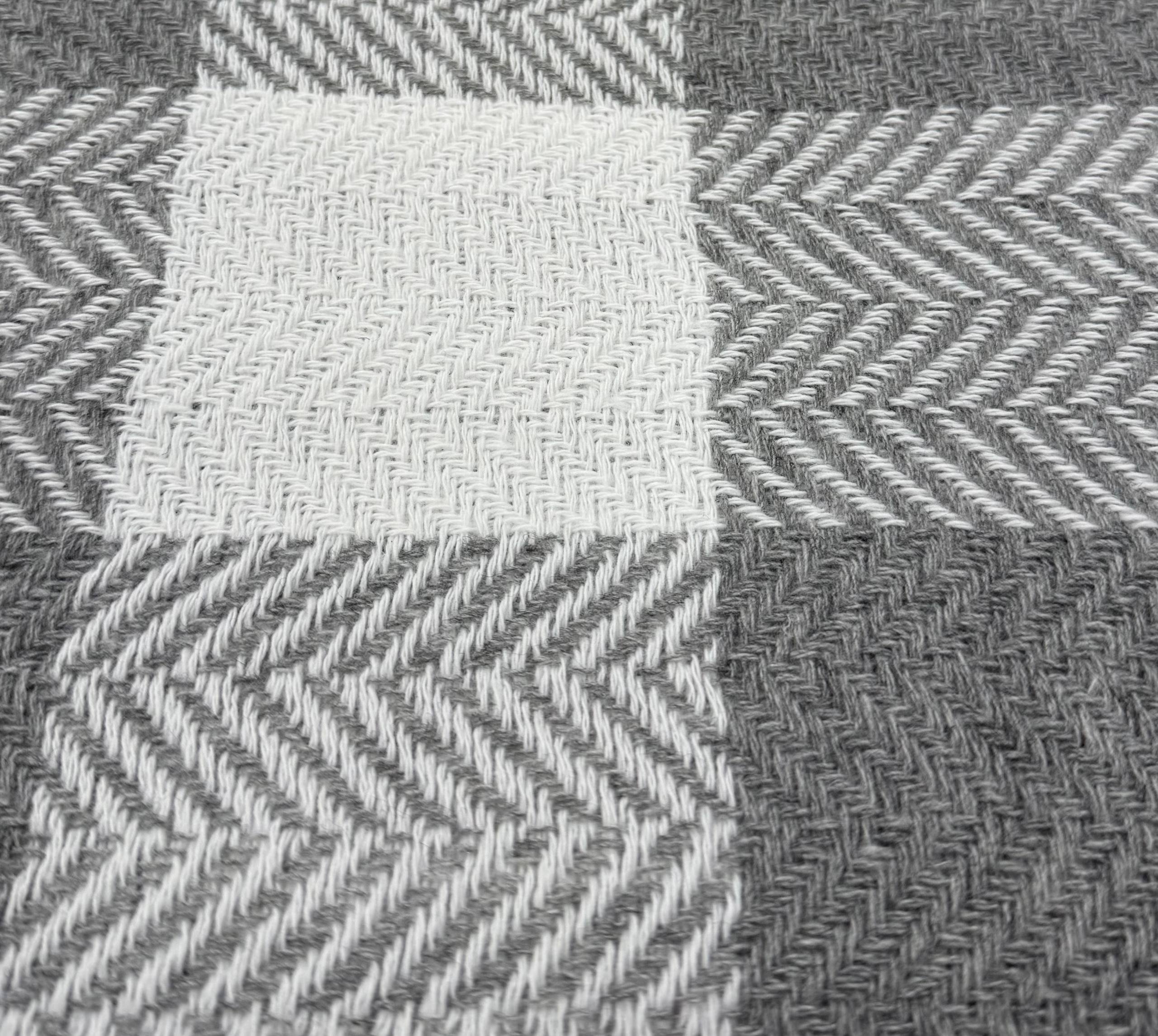 200*220 Ёлочка квадратами Серо белый вафля плед