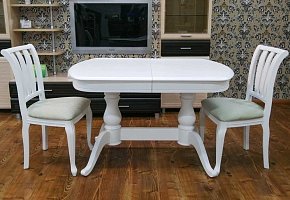Стол обеденный деревянный Кабриоль круг белая эмаль+серебро 1200*1200*750мм